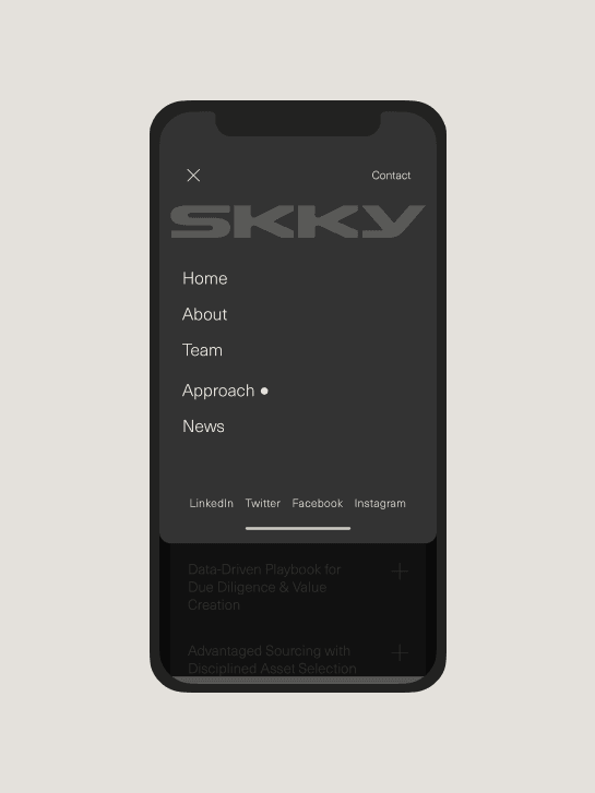 When Kim Kardashian and Jay Sammons came together to form SKKY Partners, they needed a digital platform that would match their vision of excellence. The challenge was to create a scalable architecture, an accessible user experience, and an elegant motion experience that would truly represent the essence of SKKY Partners.